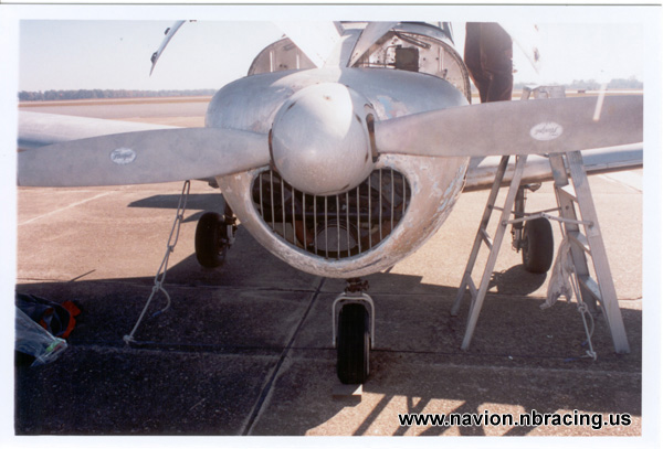 Here you can see the smiley face that just screams '40's. Also notice the nose strut is collapsed and the scissors have severe surface rust. |